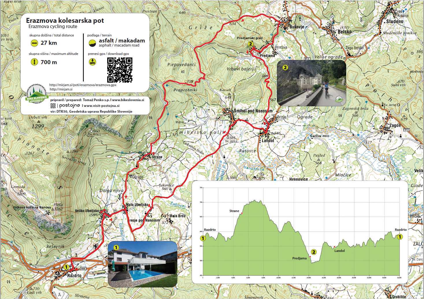 From Strane, the cycling trail takes you on a macadam road through the forests at the foot of Nanos to Bukovje and to the famous Predjama, the hometown of the medieval robber knight Erazem. There you can stop at the Predjamka restaurant, where you can have refreshments and gather new strength for the rest of the journey while looking at Erazem’s beautiful home, Predjama Castle.